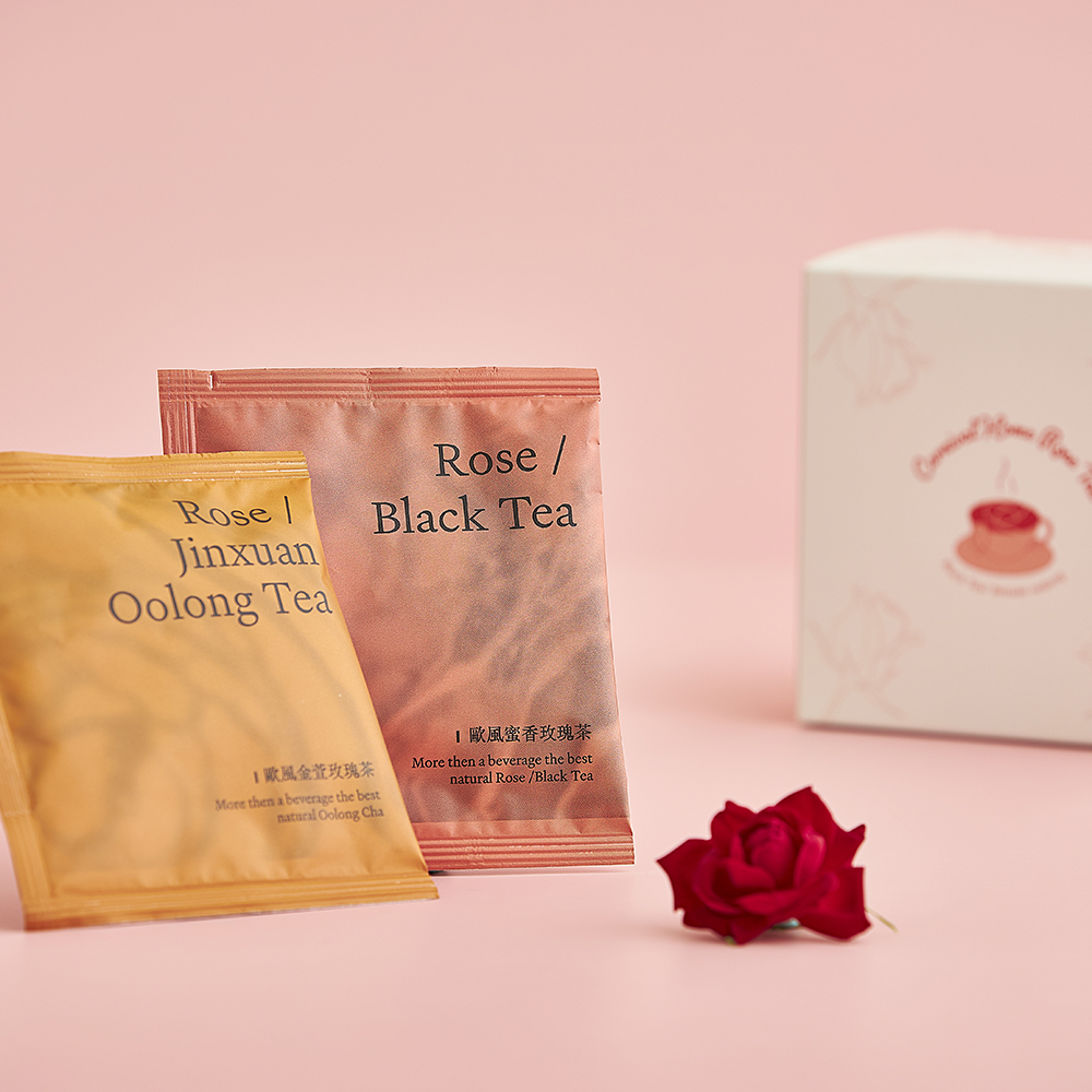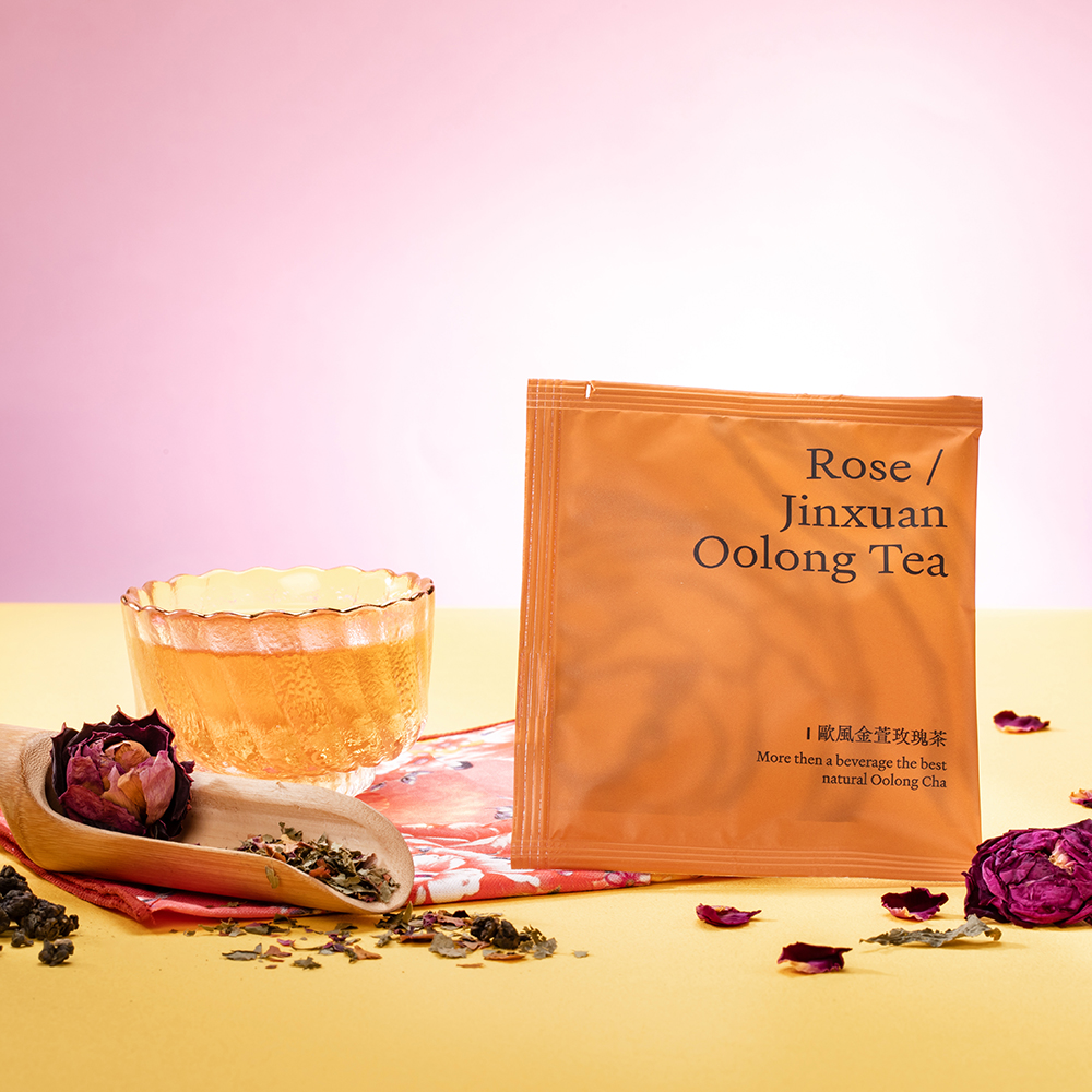 大馬士革玫瑰以其高品質花材著稱,富含天然芳香油,帶出優雅馥郁的花香,能舒緩身心,提升飲用體驗;金萱烏龍茶則具備獨特的奶香與蜂蜜甘甜口感,結構細膩且回甘持久,呈現茶葉特有的鮮爽與圓潤。