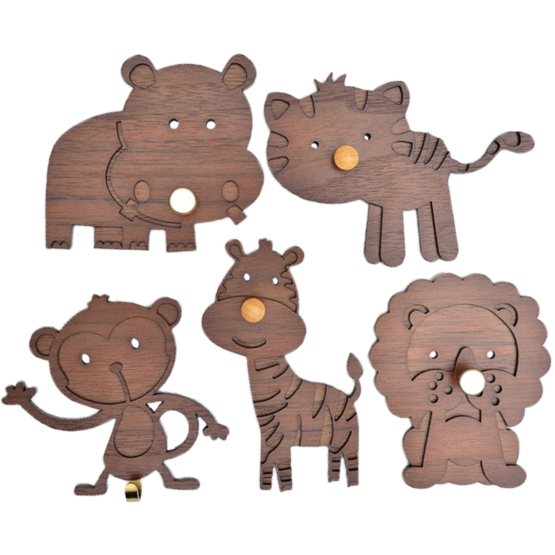 胡桃木造型壁貼掛勾【一組5入/動物造型】