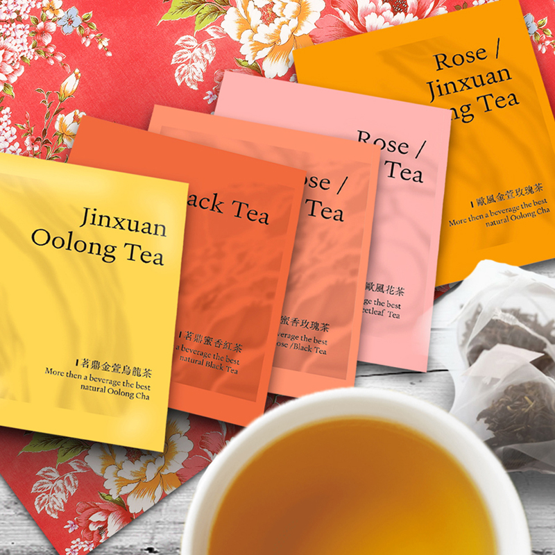 茶包種類:茗鼎金萱烏龍茶、茗鼎蜜香紅茶、歐風金萱玫瑰茶、合家歡歐風花茶、歐風蜜香玫瑰茶