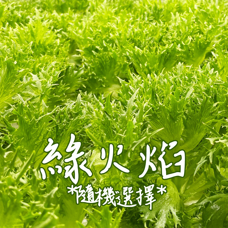 紅/綠火焰、紫/綠橡木、蘿蔓、紅捲、紅/綠奶油波士頓等各類萵苣(隨機挑選)。 |