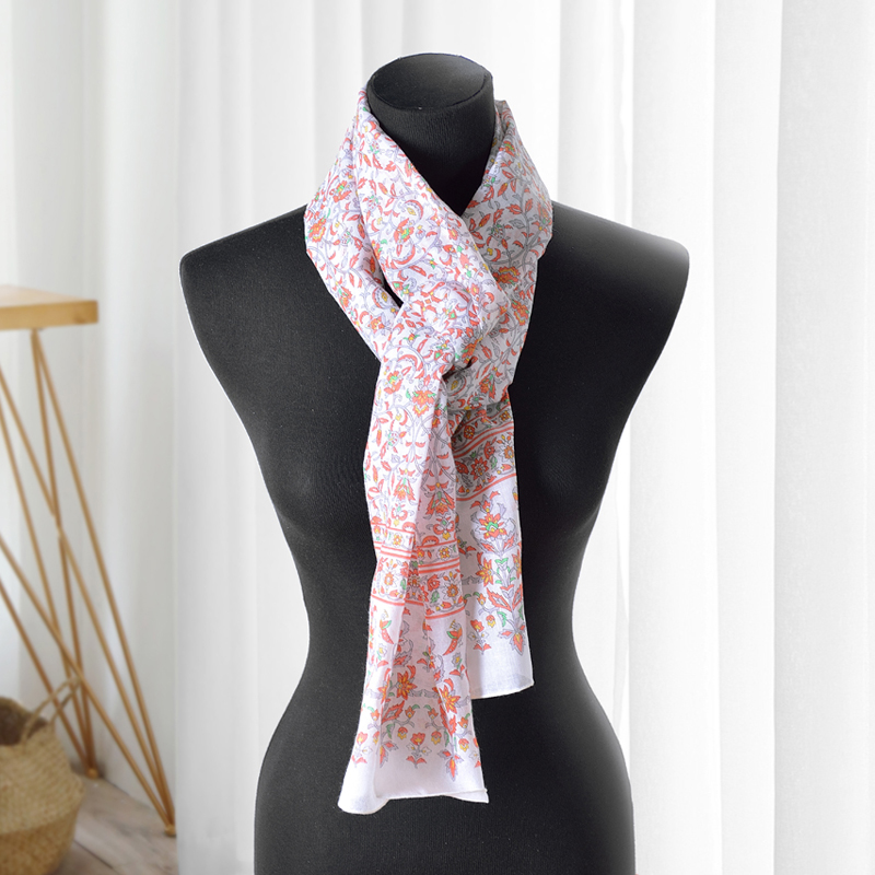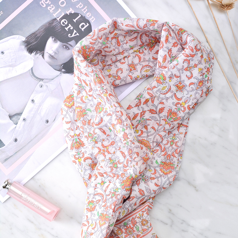 日本集采苑 - Bird Series 鳥シリーズガーゼストール絲巾/圍巾/方巾/頭巾/披肩(珊瑚米色)《日本設計製造》