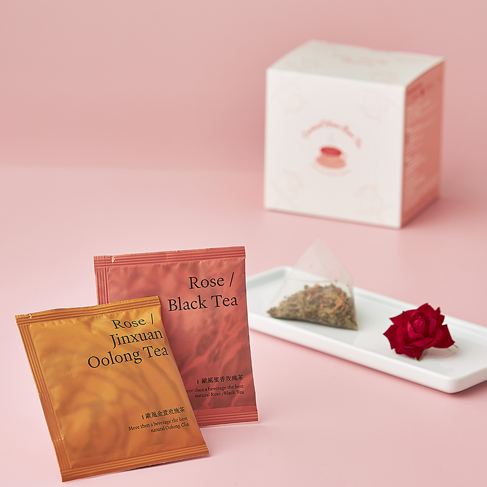 大馬士革玫瑰以其高品質花材著稱,富含天然芳香油,帶出優雅馥郁的花香,能舒緩身心,提升飲用體驗;金萱烏龍茶則具備獨特的奶香與蜂蜜甘甜口感,結構細膩且回甘持久,呈現茶葉特有的鮮爽與圓潤。